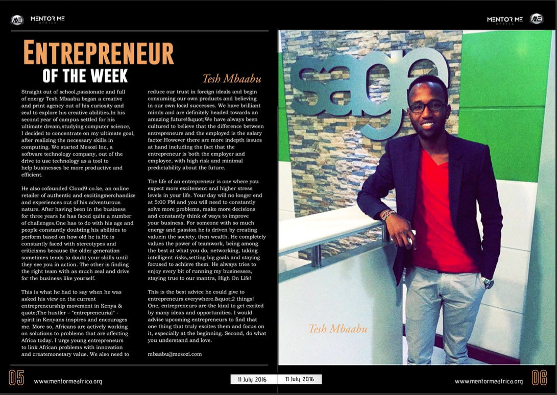 He started Mesozi Inc, a software technology company, out of the drive to use technology as a tool to help businesses be more productive and efficient. He also cofounded Cloud9.co.ke, an online retailer of authentic and exciting merchandise and experiences out of his adventurous nature.